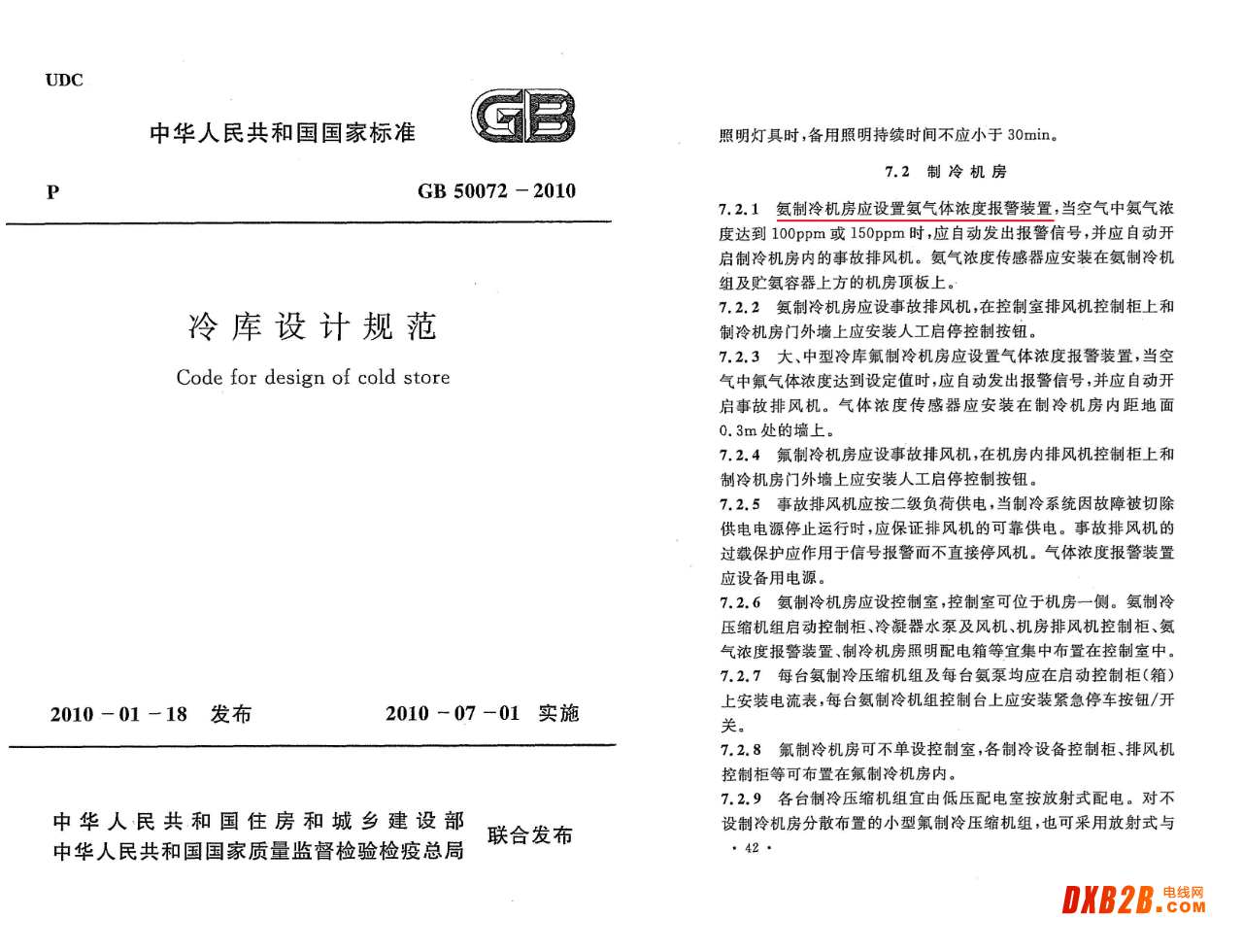 根據(jù)《GB50072-2010冷庫(kù)設(shè)計(jì)規(guī)范》氨制冷機(jī)房應(yīng)該設(shè)置氨氣濃度報(bào)警裝置: